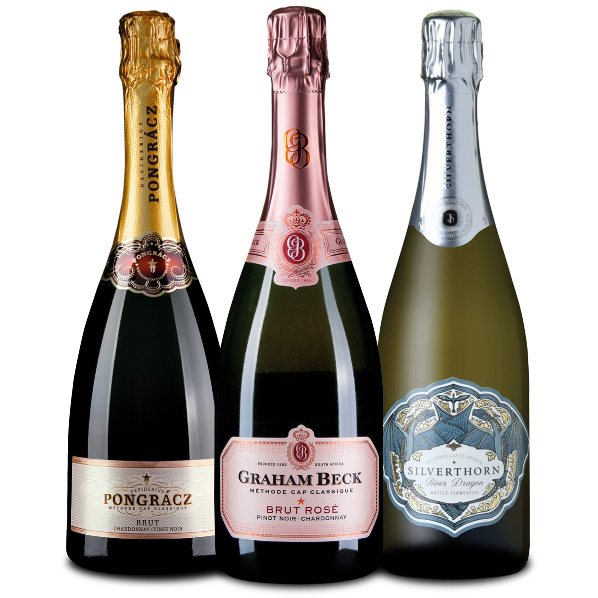 Probieren Sie die Vielfalt der Schaumweine(Méthode Cap Classique, MCC) aus Südafrika und sparen Sie gegenüber dem Einzelkauf. Die Flaschengärung erfolgt nach dem Vorbild der französischen Champagnerherstellung.Pongracz Méthode Cap Classique (MCC) Bru