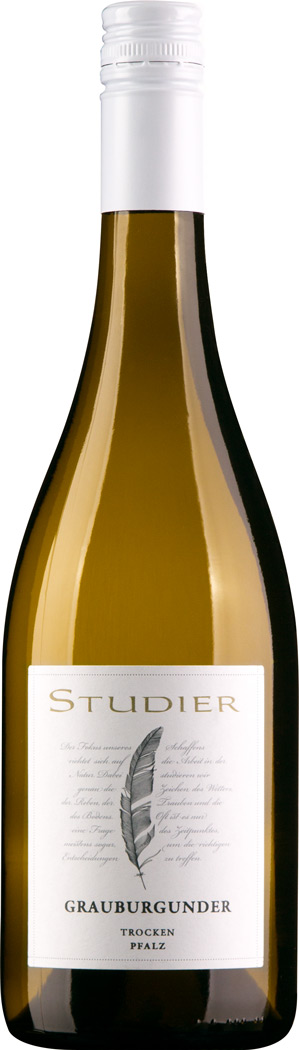 Dieser Grauburgunder (Pinot Gris) duftet im Bouquet nach Mandelblüte und Aprikose. Am Gaumen ist der Weißwein aus der Pfalz angenehm weich. Er zeigt eine moderate Säure, ist aber dennoch schlank und lebendig. Der Studier Grauburgunder besitzt zudem e